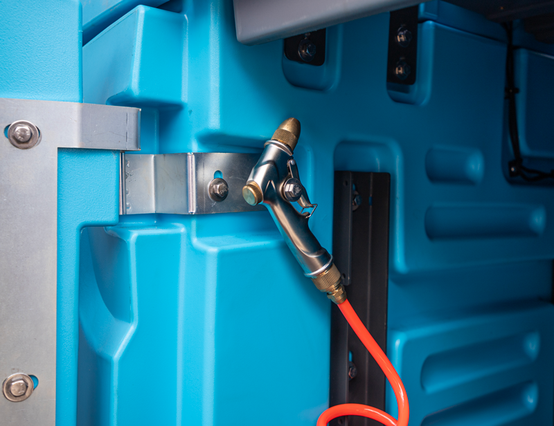 - Spray Nozzle - Add your favorite detergent to pre-clean dirty areas or use plain water to clean undercarriage and tanks after use.